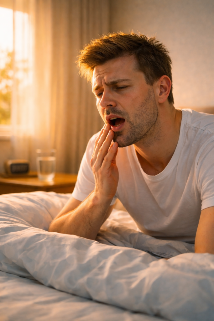 Waking up with a dry mouth can feel uncomfortable and sometimes surprising. You may notice a sticky feeling in your mouth, thirst, or difficulty swallowing when you wake up.